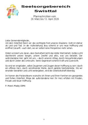 Hier finden Sie die aktuellen Pfarrnachrichten für den Pfarrverband Swisttal
