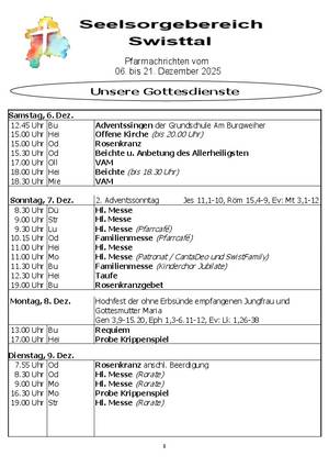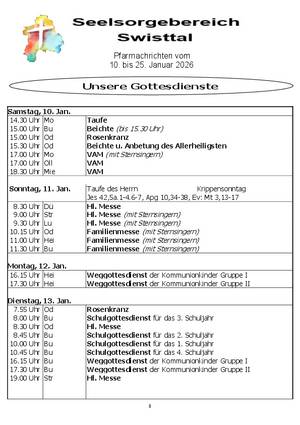 Hier finden Sie die aktuellen Pfarrnachrichten für den Pfarrverband Swisttal