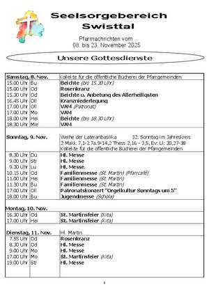 Hier finden Sie die aktuellen Pfarrnachrichten für den Pfarrverband Swisttal